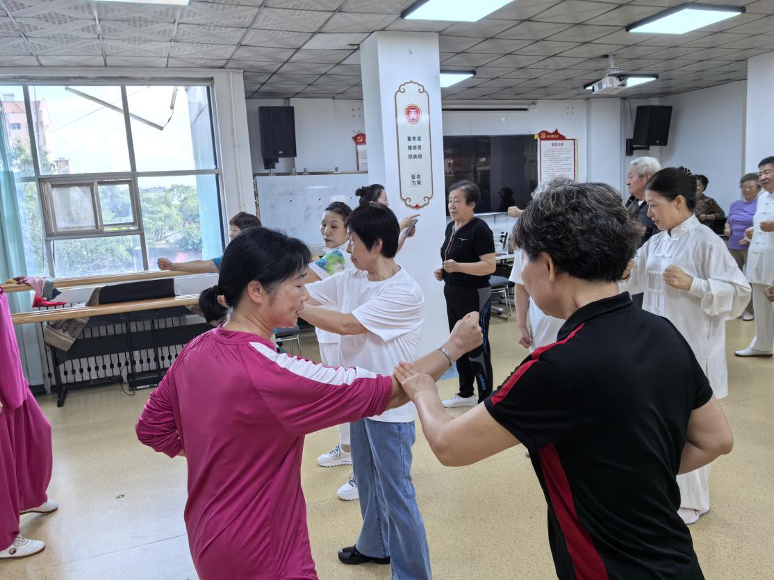 活动现场,巴岩会长细致讲解了八段锦的健身原理及习练要点,并进行了标准动作示范。在他的带领下,老同志们精神饱满,学习热情高涨,一招一式认真揣摩演练,深刻感受着这一传统养生功法带来的身心舒缓与愉悦。整个教学过程互动频繁,气氛融洽热烈。
